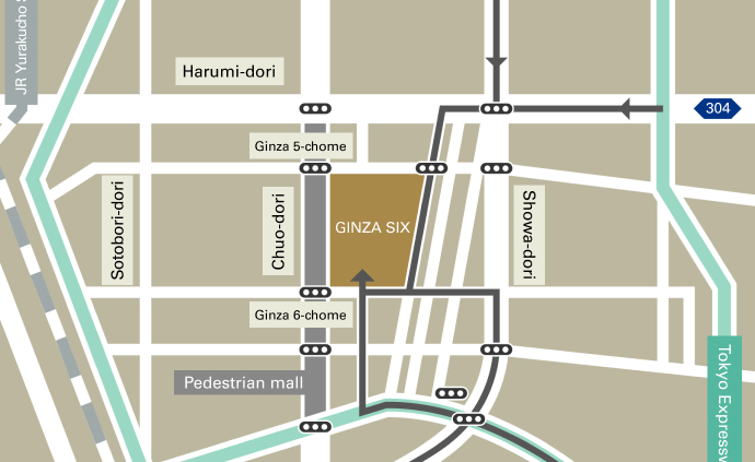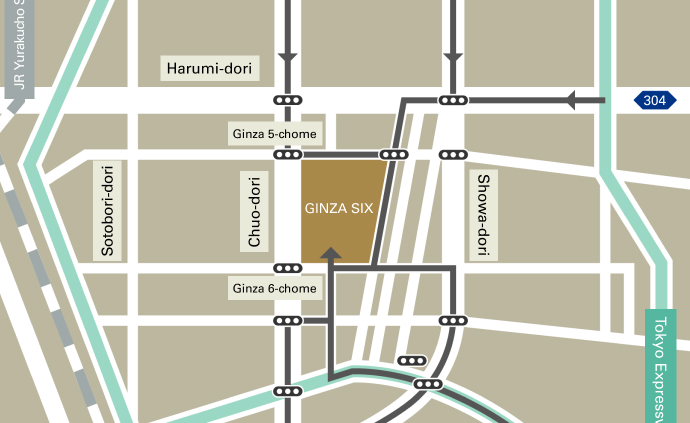 Follow the routes given below to avoid traffic congestion and to ensure a smooth visit. We recommend using public transportation as a convenient way to visit GINZA SIX.