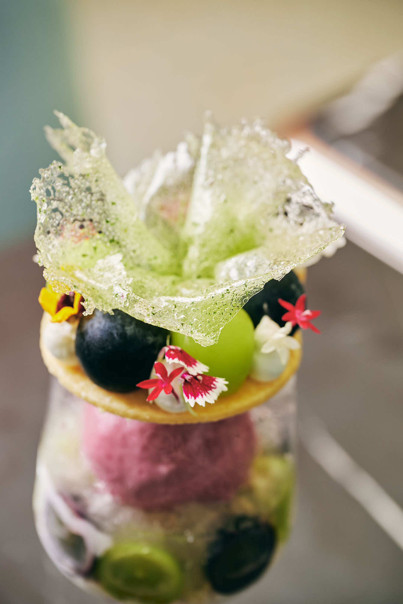 「マルニの象徴でもあるカラーやデザインを食で表現するにあたり、スイーツだけでなく、料理、ドリンクそれぞれに違った遊び心を込めました。実際のコレクションから着想を得て、意外な食材の組み合わせや、食べ進めるごとに印象が変わる構成など、驚きと楽しさを感じてもらえる仕掛けを散りばめています。一方で、アサコ イワヤナギらしい繊細さやレイヤー表現も忘れない。その両立が大きな挑戦でした。だからこそ、どこか遊び心を感じながらも、自分たちらしさも感じられるメニューになったと思います。銀座という特別な場所だからこその、日常とは異なる視点で生まれた、大胆でカラフルな世界観を楽しんでいただけたら嬉しいです」