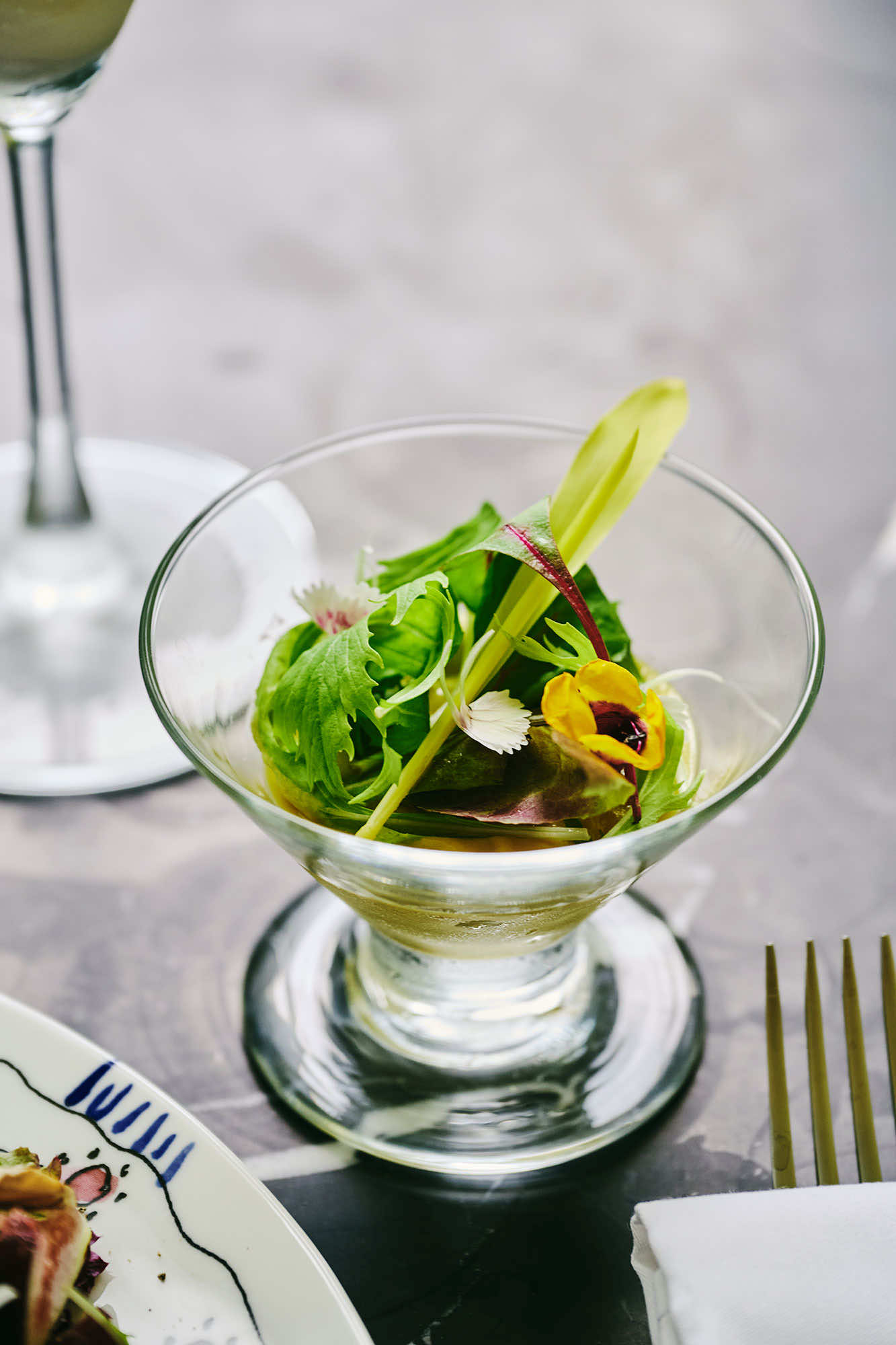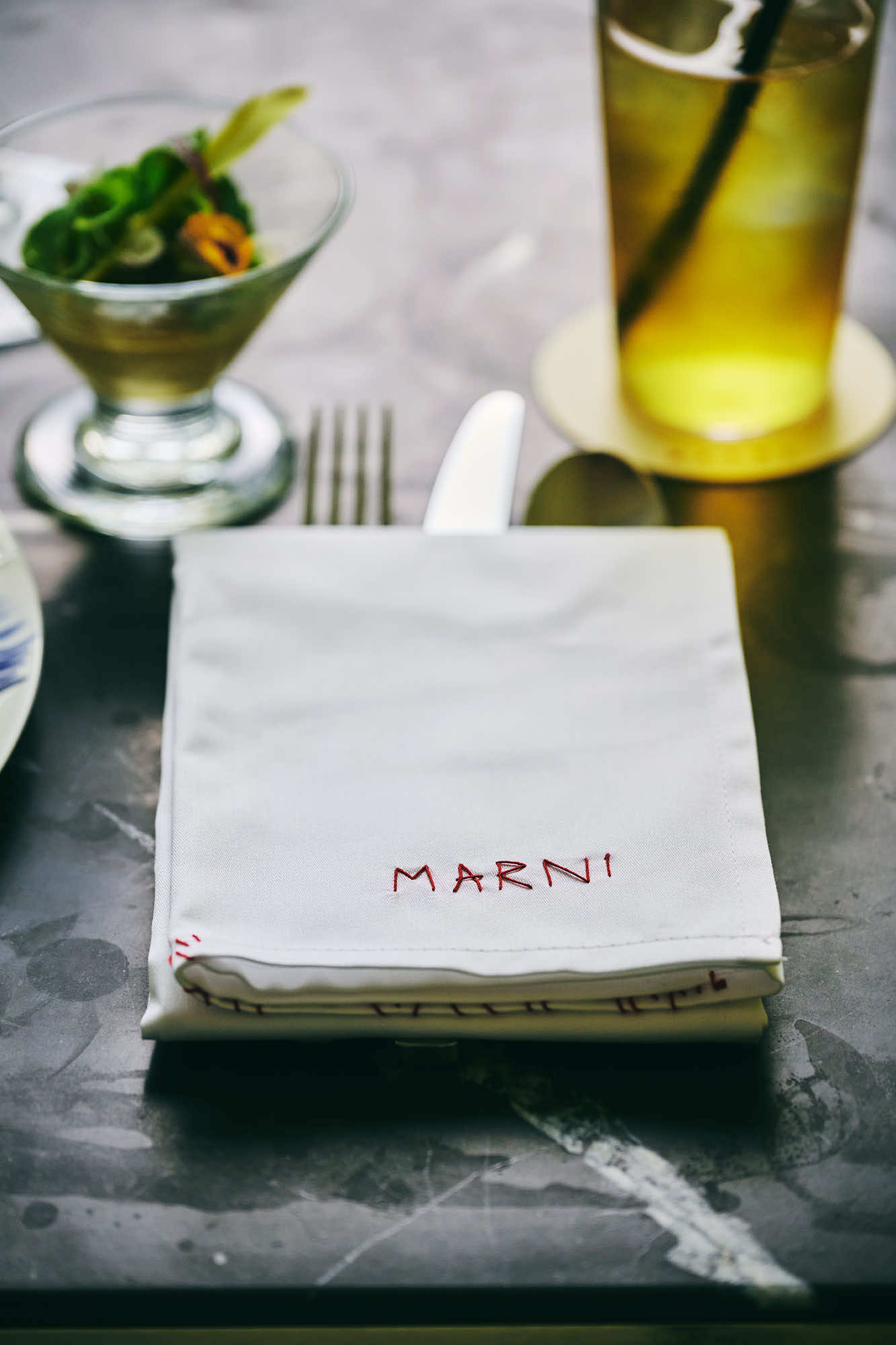 さらに、テーブルウェアには、ベルギーのインテリアブランドとのコラボレーションによるMARNI×SERAXコレクションを使用。ファッションとリンクするフラワーモチーフのプレイフルなデザインが、芸術的なメニューをさらに華やかに引き立てます。
