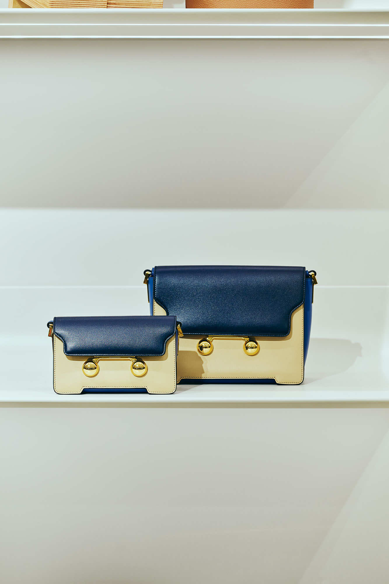 そして、ギフトにも人気の高いスモールレザーグッズにも、マルニの色彩の感性で表現したマルチカラーが印象的な「トランク」ウォレット、「トランカルー」のスタッズを大胆に配したウォレットといったアイコンバッグのデザインが落とし込まれています。他にも波のようなシンボルロゴをハンドステッチで表現した「SYMBOL(シンボル)」シリーズなどをラインナップ。バッグ、シューズ、スモールレザーグッズにも、マルニらしいクリエイティビティが表れています。