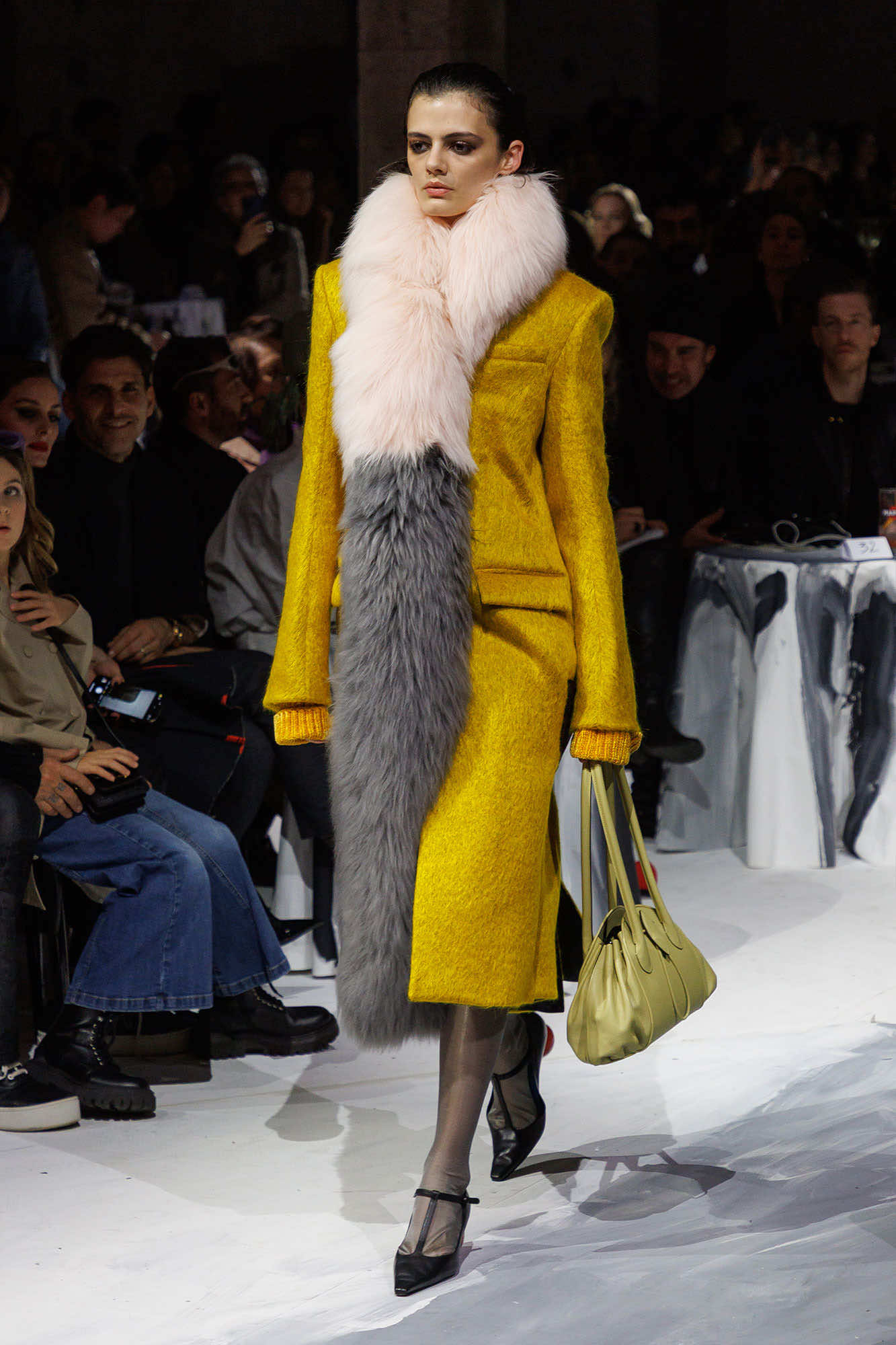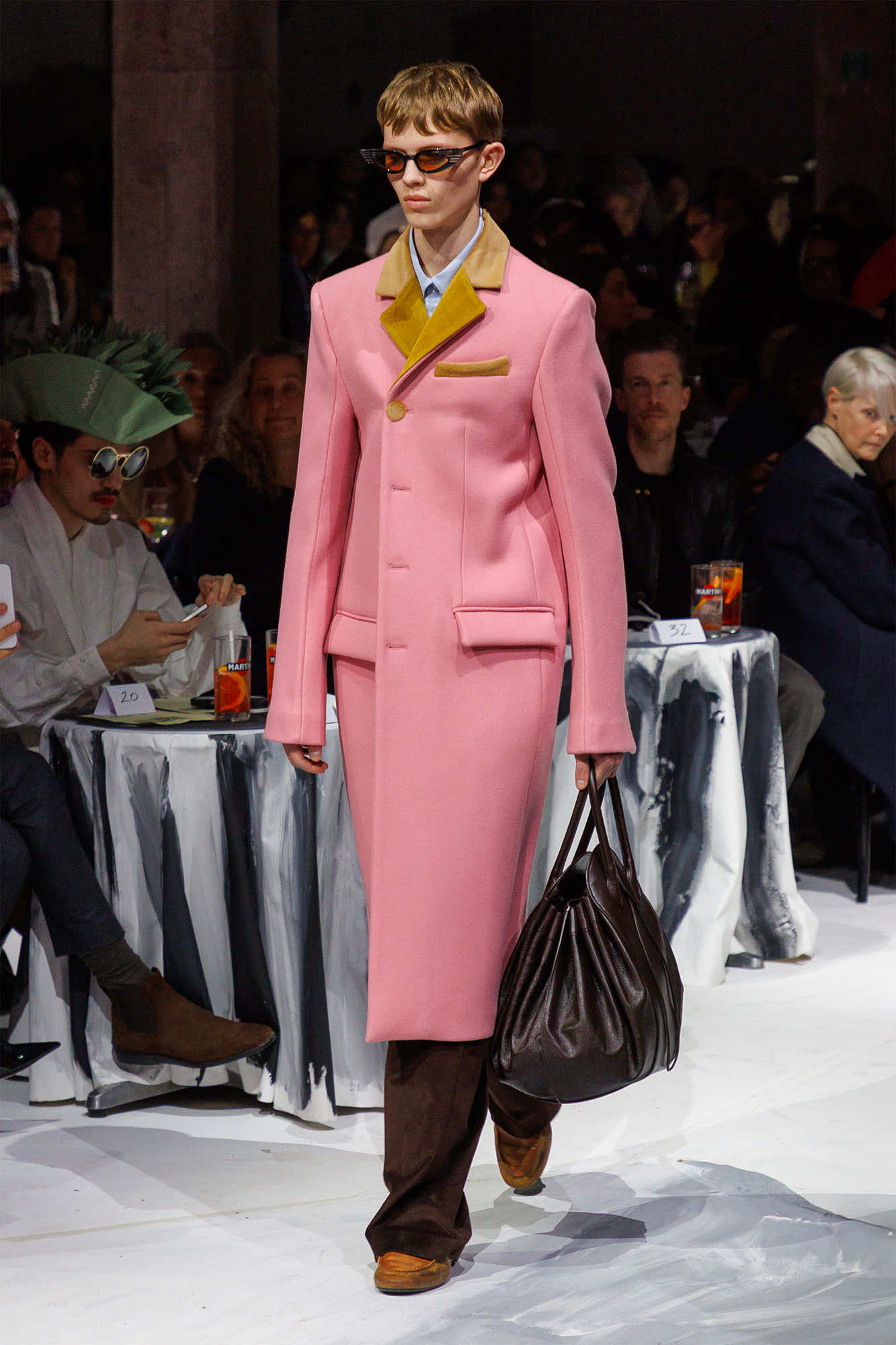 2025年秋冬コレクションは、フランチェスコ・リッソがロンドンのパブで出会った2人のアーティスト、オラオル・スローンとソルジャー・ボーイフレンドとのセッションによって生まれました。コレクションの準備にあたり、まず約1カ月の間、3人はアーティストレジデンスで共に制作を行ったのだそう。そこでの制作の成果は、2025年2月にミラノで発表されたコレクションのランウェイの背景となった大型キャンバスに具現化され、プリントやモチーフ使い、刺繍という形でコレクション全体に派生。マルニらしいアートとファッションの密接な結びつきを確固たるものにしました。