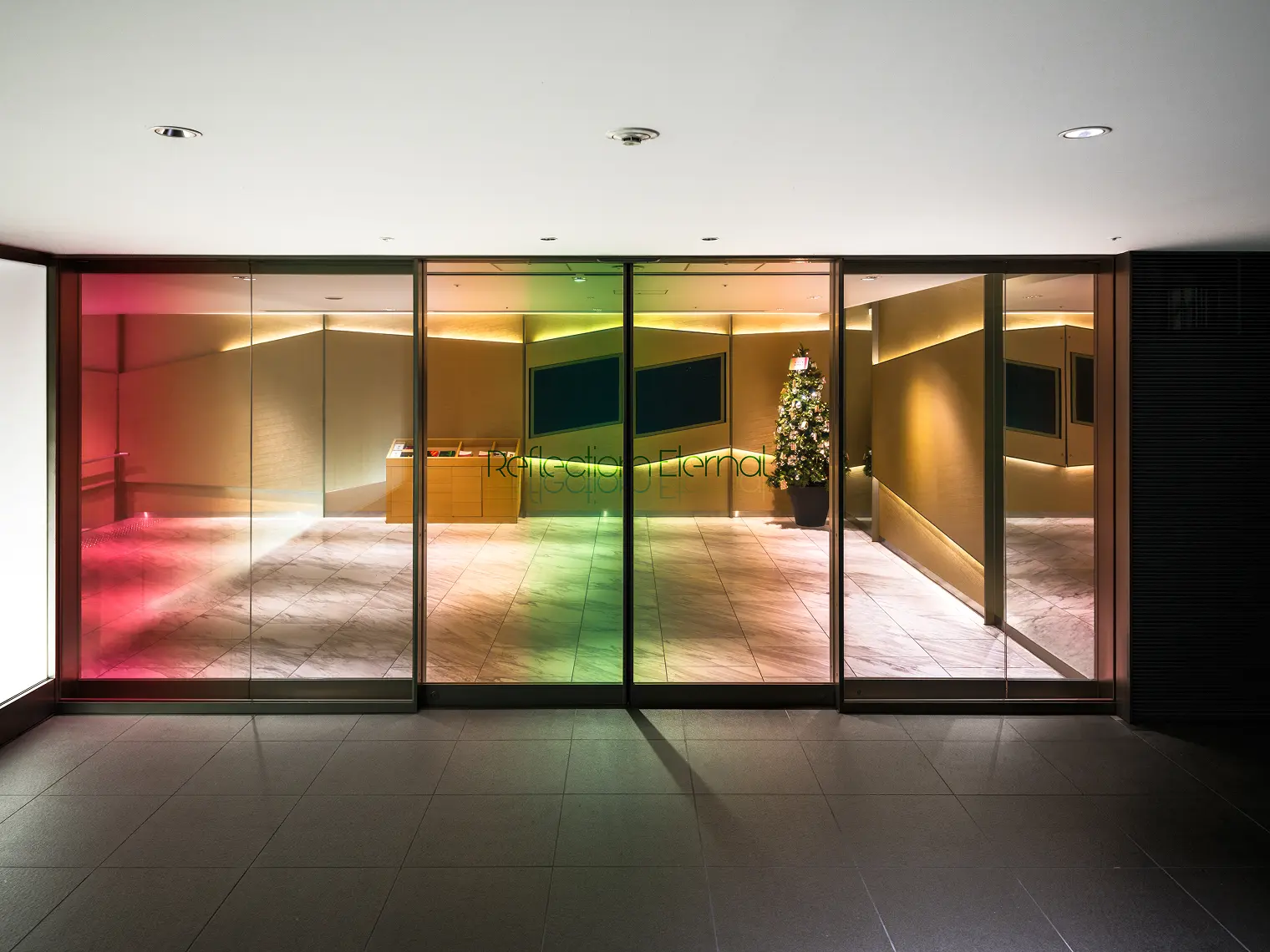 オブジェは音色を奏でるようにゆっくりと廻り、人々の訪れを、虹色の光と共に迎え入れる。 続いていく反射と、流れていく光、浮かぶ音色。今もひろがりを続ける名曲をインスピレーションに、デザインスタジオYARがディレクション・デザインを担当。