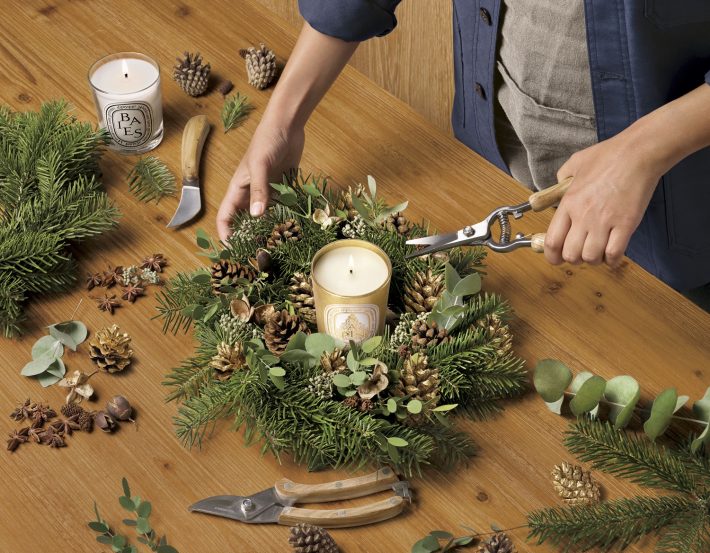 このリースは本物の針葉樹を使って作られ、キャンドルのスタンドとしてもご利用いただけます。エレガントな仕上げが施され、冬のホリデーをより美しく演出するリース。ディプティックのキャンドルが織りなすフェスティブできらびやかな雰囲気をお楽しみください。