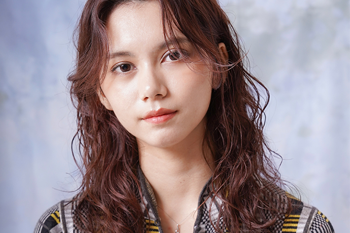 ふんわりと立ち上げたセンターパートの前髪が大人の女性らしさを引き立てます。
