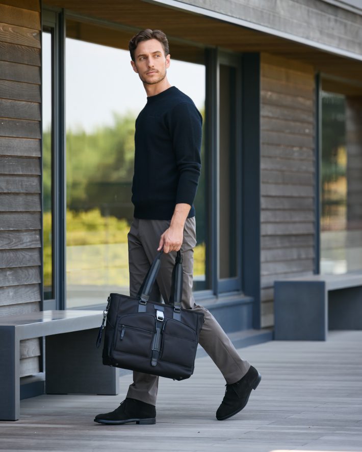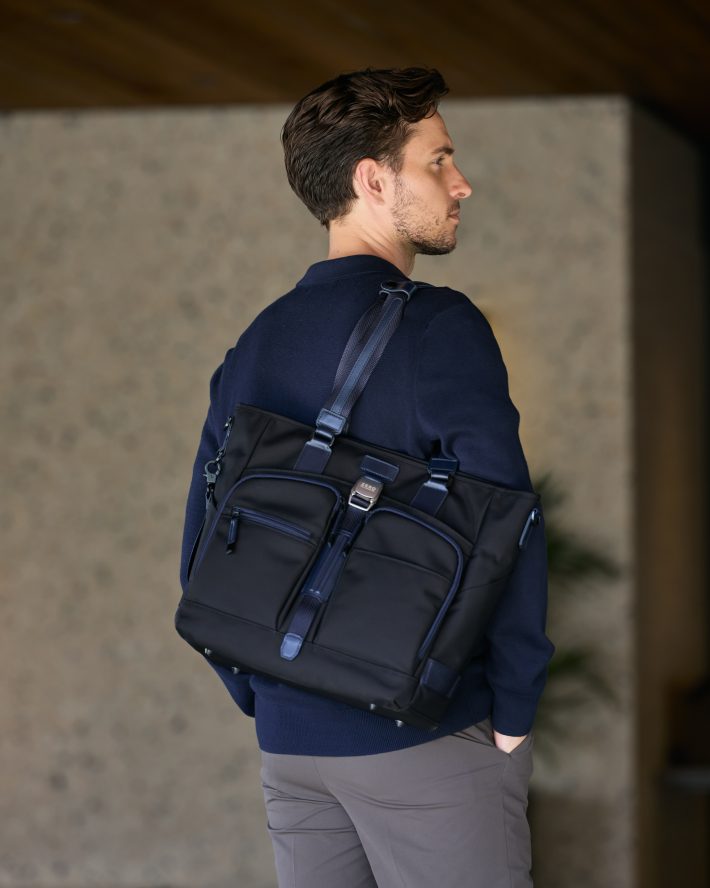 洗練されたデザインと優れた耐久性を兼ね備えた、大人のためのカジュアルシリーズ「ZLM」にトートが新登場。本体には、摩耗や引き裂きに強いコーデュラバリスティック®ナイロンを採用し、長く愛用できるタフさを実現しました。さらに、ZERO HALLIBURTONのアイデンティティを象徴するアルミ素材のバックルや、ブランドの象徴であるダブルリブを表現した牛革パーツが、上質なアクセントを加えています。使用頻度の高い引手は牛革巻き仕様にすることで、不快な金属音を軽減し、開閉しやすさを実現しています。