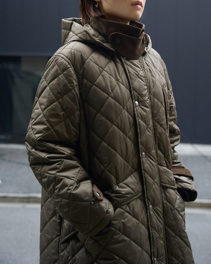 一枚さっと羽織るだけでスタイルのある装いへと導いてくれる〈ブリティッシュ メイド〉の新作キルティングコート。中にしっかり着込める余裕がありつつも、オーバーサイズに見えない上品なシルエットで、平日から週末まで汎用性高く付き合えます。