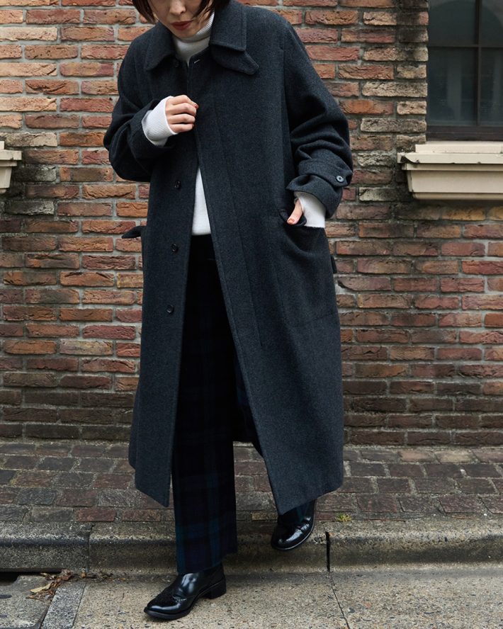 ゆるりとしたAラインで、背面には深いスリットもあるので自転車に乗る際も安心◎ トラディショナルな雰囲気で、英国好きならいくつになっても普遍的に付き合えるアウターです。