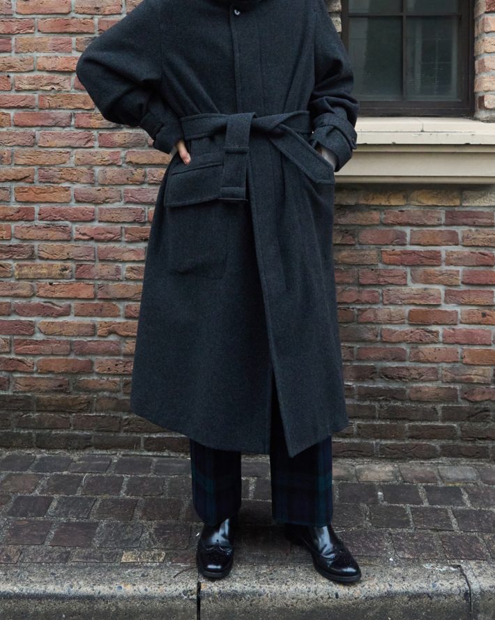 1950年代のコートをルーツに、不要なディテールを削ぎ落とすことで、モダンクラシックな抜け感を宿した本作。襟元を立てたり、ウエストや袖口のベルトを締めることで、随所に優雅なドレープが生まれエレガンスが漂います。