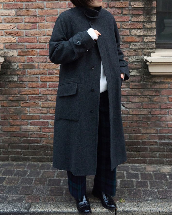 マニッシュなデザインと上質さが魅力の〈ブリティッシュ メイド〉人気アウター、オフィサーコート。今季は写真のチャコールグレーとネイビーの2色で展開しています。