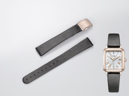 また、ES9506-71Wと同じく、シーンに合わせて取り替え可能なベルトも付属しています。ダークグレーのサテン調ベルトは可愛い中にも上品さを押し上げてくれること間違いない1本です。
