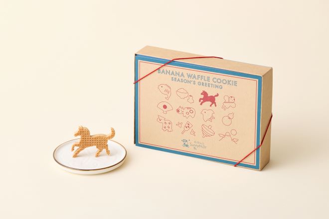 希少価値の高い「山岳バナナ」の甘く濃厚な味わいが特徴のバナナワッフルクッキーが、新年限定の特別な型抜きになって登場しました。縁起物の「富士山」や干支の「午」などお正月にちなんだ全12種類の型抜きの中から8枚がランダムに入っています。