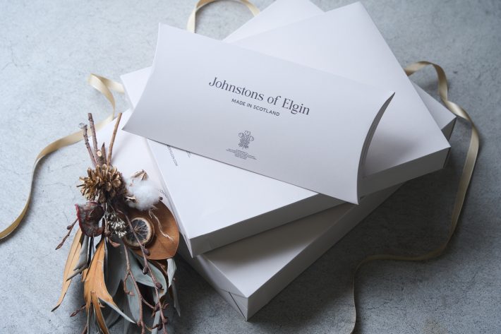 12月25日(木)までの期間中、ブリティッシュ メイドでは「ジョンストンズ オブ エルガン」の純正ギフトボックスを無料で承っております。大切な方への贈り物に、どうぞご利用ください。