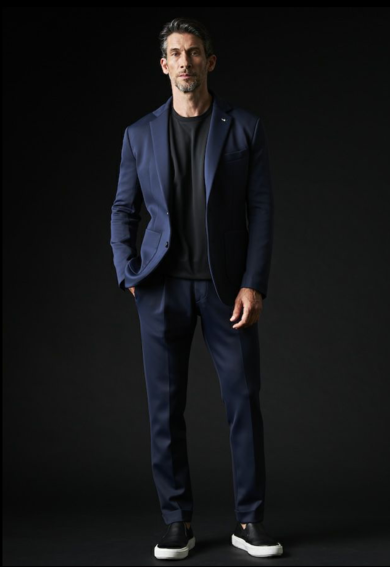 ジャケットはいつものモバイルセットアップをベースにし、肩幅・身幅にゆとりを持たせたワンサイズ大きめ仕様です。