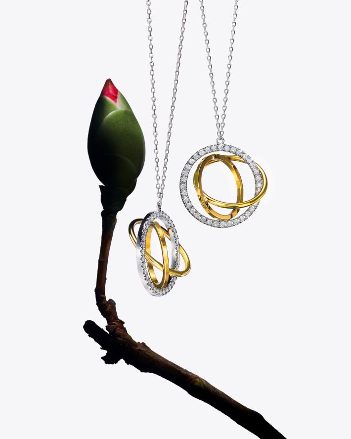 「エレメンツ フローティング ネックレス」各396,000円(税込)