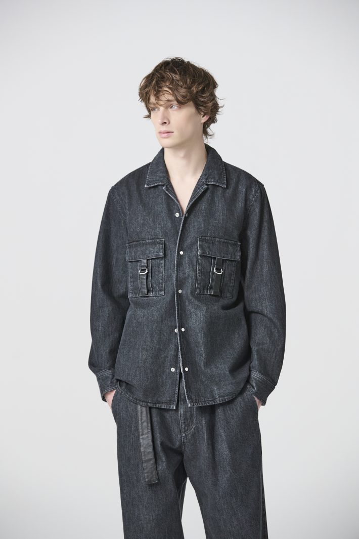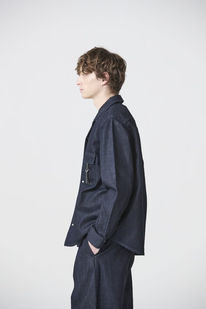 生地にはカイハラ社製の11ozデニムを使用。適度な厚みがありながら硬すぎず、着始めから身体になじみやすい質感です。染色にはカイハラ独自のエコ染色技術「D-SPEC ECO」を採用。水資源やエネルギー消費を抑えながら、深みのある色合いを実現しています。Tシャツの上に羽織るだけで完成度の高いデザインで、ロングシーズン着用いただけます。3色・3サイズでご用意しておりますので、是非店頭でご覧くださいませ。