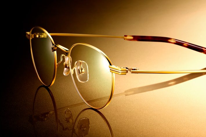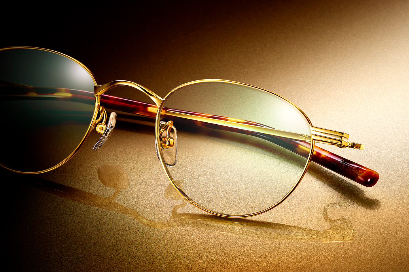 ゴールドの品格のある質感と程よい重量感が、逆Rヒンジを軸としたフォーナインズの高い機能性と融合し、新たな世界へと人々をいざないます。18金をベースに、逆Rヒンジにのみチタン素材を用いることで、ゴールドだからこそ表現できる高級感溢れる上質な表情と理想の掛け心地が共存。卓越した上質さと洗練された品質が調和した、最高純度を体現するゴールドフレームです。