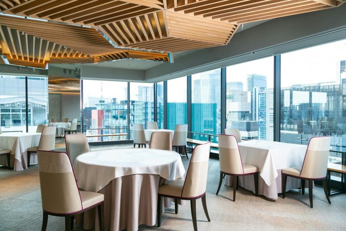 2面ガラス張りの窓から銀座のまちを見渡せるレストラン会場です。