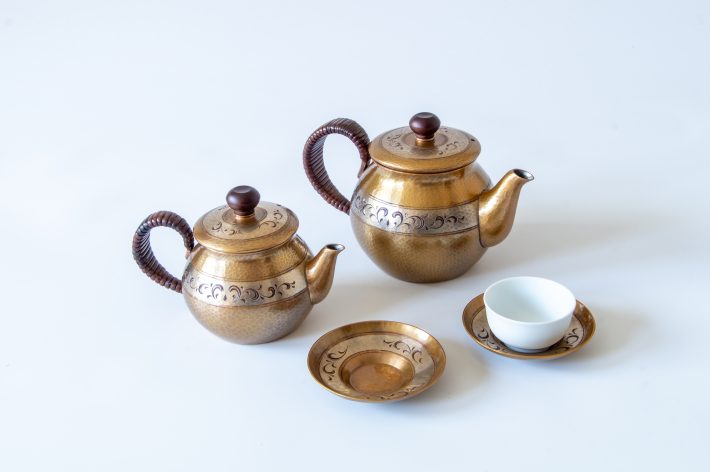 こんにちは、玉川堂です。新緑の香りがいっそう深まるこの頃、爽やかなお茶が一段と美味しく感じられますね。新茶を待ち望んでいる方も多いのではないでしょうか。さて、この度は、2026年5月1日(金)より発売を開始いたします「唐草茶器」のお知らせです。唐草文様は、蔓が伸びていく様子から「繁栄」や「長寿」を象徴する縁起の良い意匠とされ、古くから親しまれてきました。やわらかな曲線が生み出す唐草文様と、落ち着いた色合いが調和し、日々のひとときにさりげない華やかさを添えてくれます。また、お使いいただくほどに風合いが深まり、銅ならではの経年変化もお楽しみいただけます。